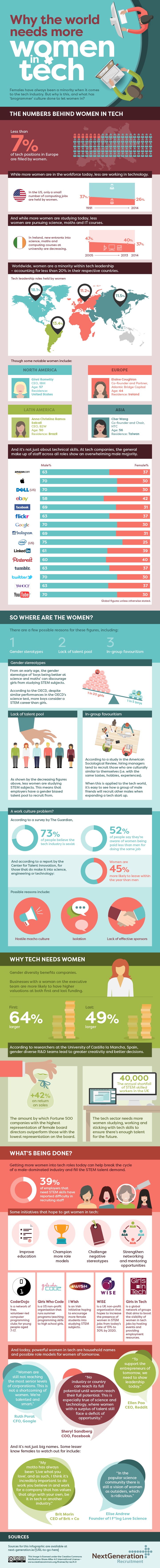 NextGeneration Recruitment, an Irish firm, has released an infographic that includes the number of women in tech from around the world, some notable female leaders and also raises the question why we need more women in tech and what can be done to keep them in the industry.
