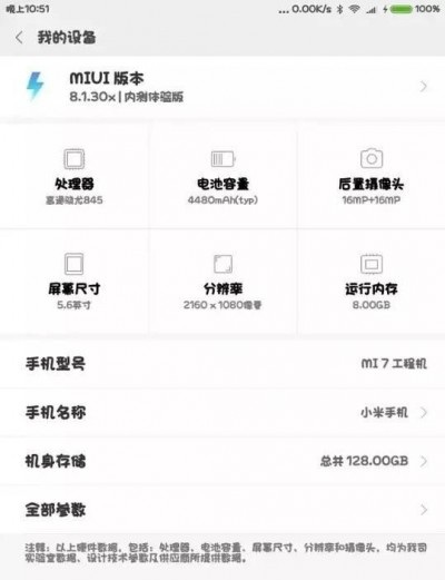 The thing that drives our attention at this point is a leaked screenshot of the about device section of Mi 7 in Chinese version.