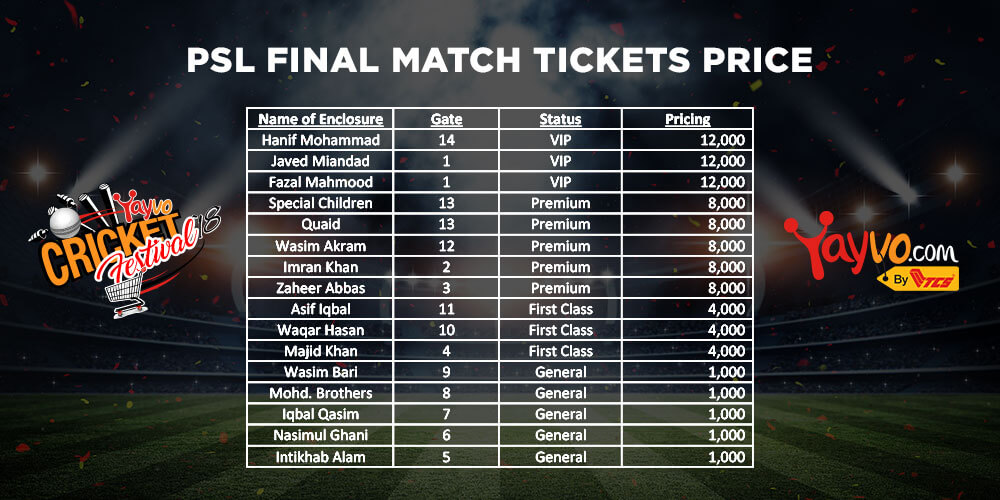 People who want to book the tickets for the Final Match of PSL 2018 can subscribe here for further updates.