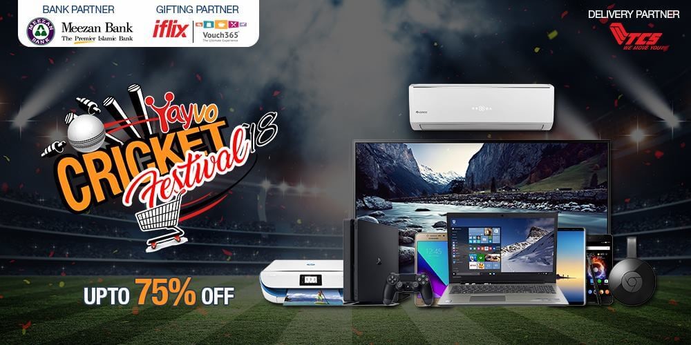 PSL is playing an exceptional role in revival of cricket in Pakistan and keeping up with that spirit; Yayvo.com has launched #YayvoCricketFestival18 which is highly unique and unseen before in the shopping world. The shopping festival has been going strong since the start, and Yayvo.com is taking it another step forward by increasing the discounts on 6th PM 2nd March 2018. Overall, there is a discount up to 75% on Mobile Phones, LED TVs, Gaming Consoles, Home Appliances, Kitchen Appliances & Sports Goods. Meezan bank is facilitating the Yayvo customers by providing an additional discount of 10% on all products.