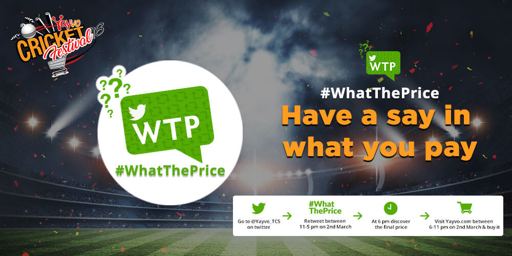 This season, Yayvo.com is reaching unparalleled heights in facilitating its customers. They are introducing #WhatThePrice for avid Twitter users. All you have to do is retweet the tweet. Yayvo.com will reduce the price of the product based on the number of retweets. This social activity aims to give the price control in the hands of the customers. This competition will take place thrice during Yayvo Cricket Festival. Retweet now to reduce the price of Samsung LED TV in the first competition; names of following two products will be disclosed on Twitter later.