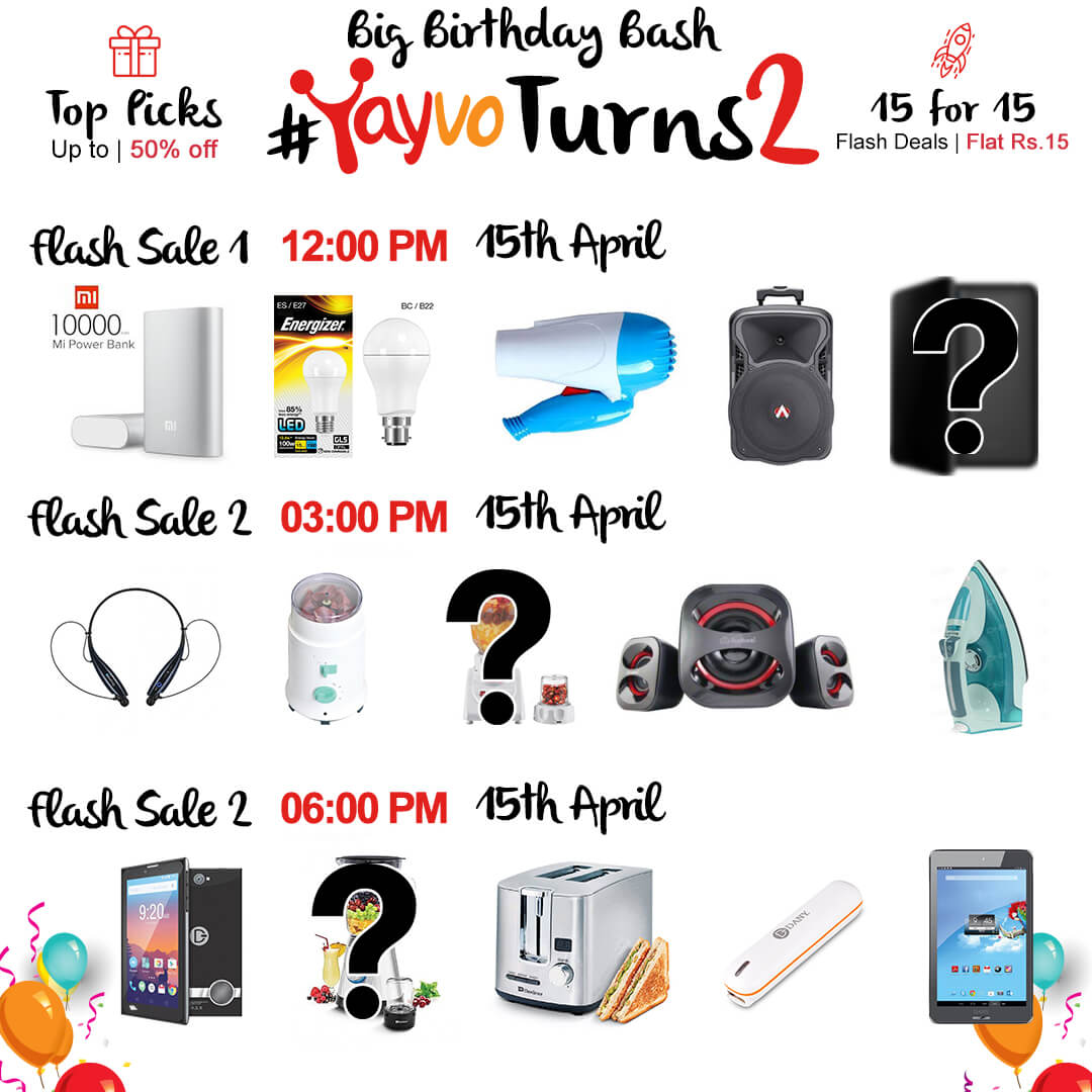 To avail these flash sales, subscribe here http://yayvo.com/birthday-bash.