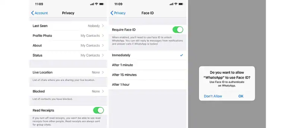 Users can also select the duration of the biometric authentication, for example, once the ‘Require Face ID’ is activated, multiple options will appear which will ask whether the user wants the biometric authentication requirement immediately or after an interval of a minute, 15 minutes, or an hour.