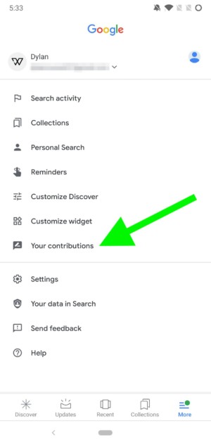This discovery was made in the Your Contributions panel in the Google app. You can see a screenshot below: