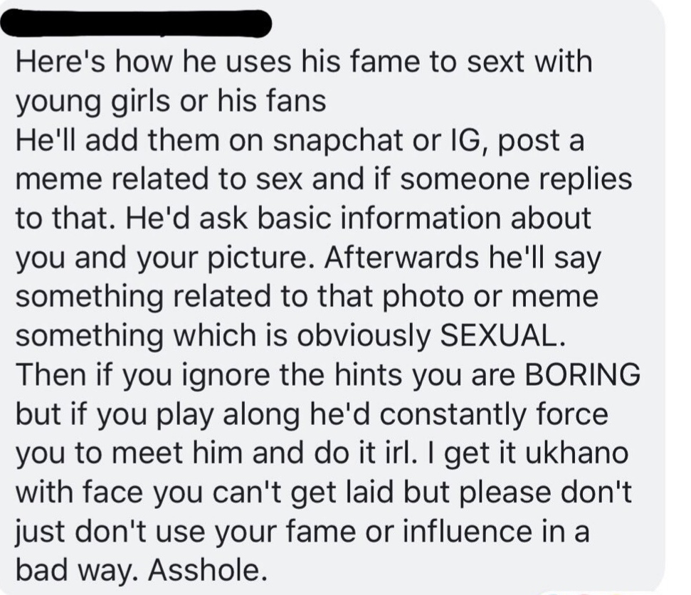 He went on to share a video on Instagram addressing his family, friends and fans where he insists that he has “never made a single woman uncomfortable” and that he merely has a professional relationship with the person who originally came forward with the accusation. He further claims that he has visual evidence to prove his innocence, and that he is not willing to publish it because it goes against his morals to do so.